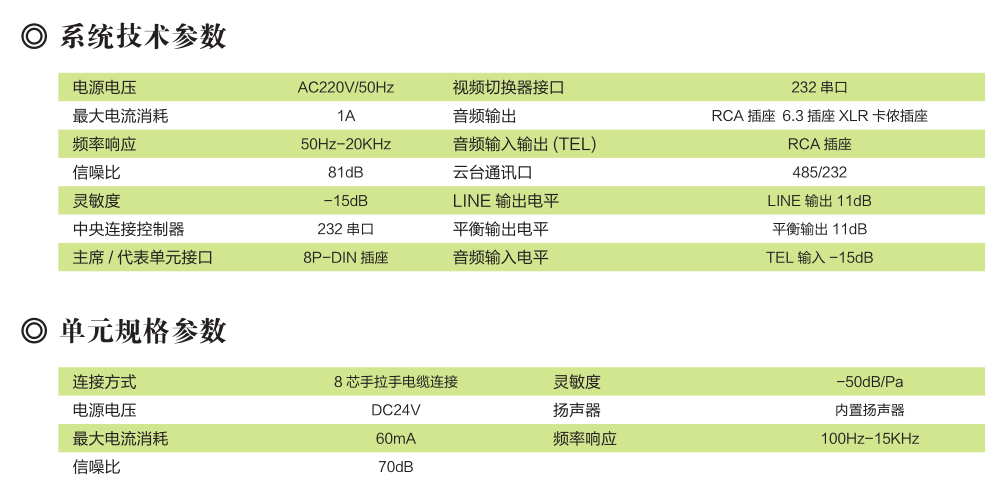 ◆四路连接话筒输出,每路可接 40 个单元,最多可接 160 个单元。
